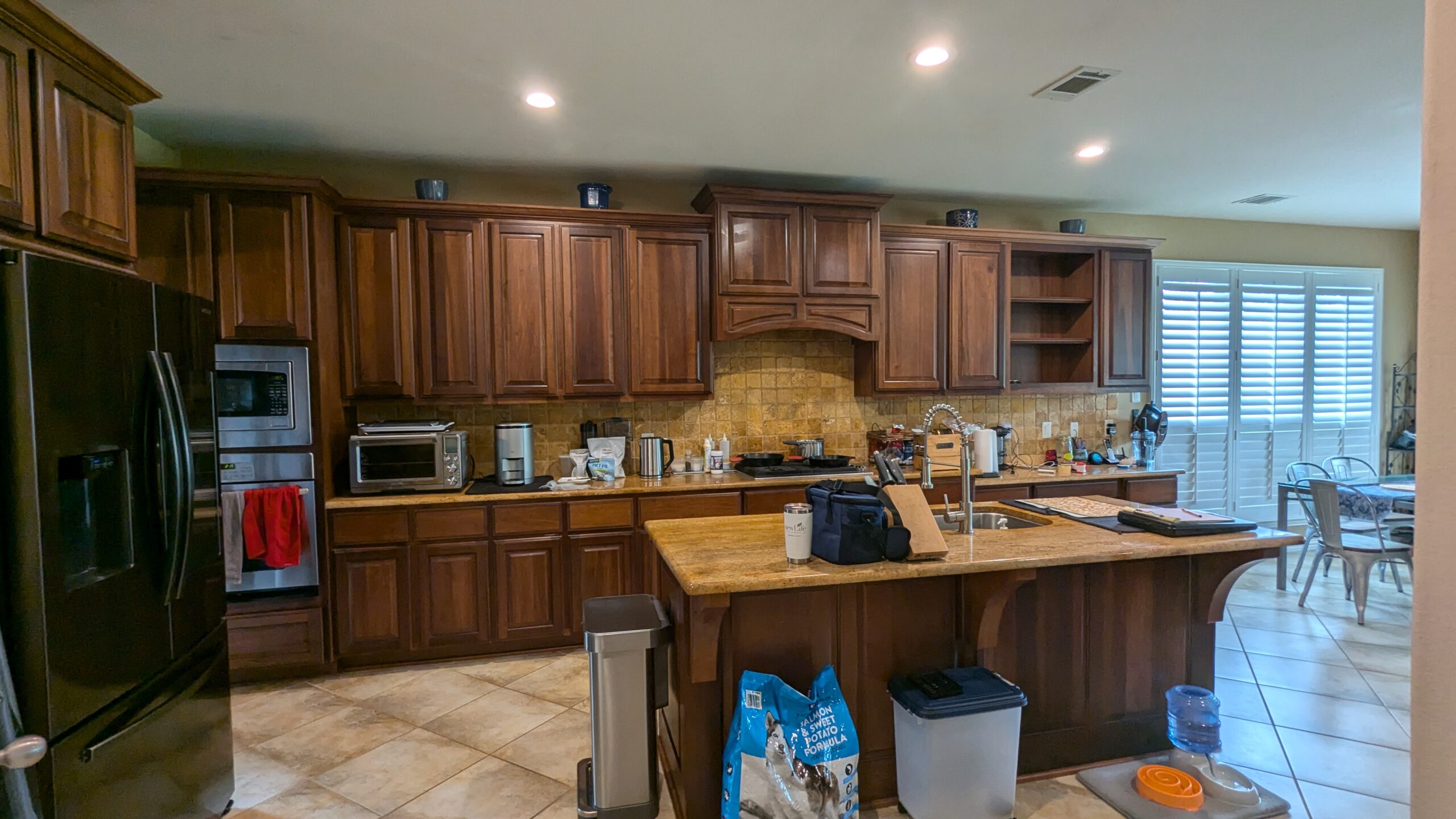 7. Drip water (size of angel hair pasta) at faucets at night, especially for kitchen and bathroom sinks that are on an exterior wall. Open the cabinet doors so warm air can get to pipes. If temperatures will be below freezing for more than 6 hrs then shut off water at the main, and open faucets in bathrooms and kitchen to drain lines. Leave faucets open until you open the water main again (when temperature gets above freezing).
